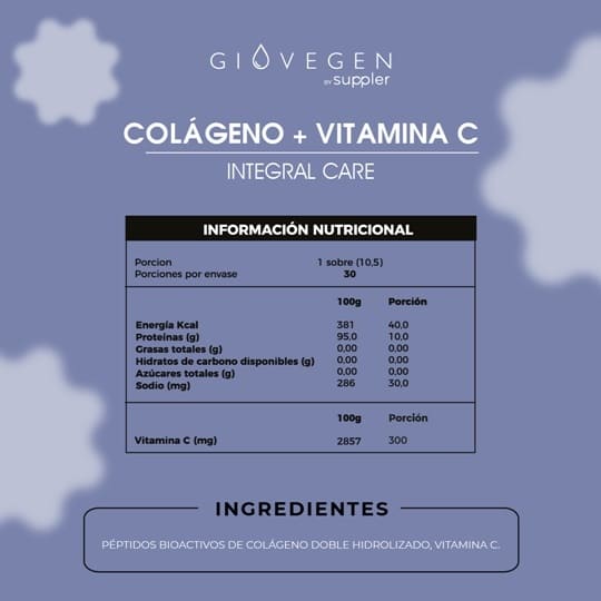 Suplementos GIOVEGEN Integral Care Colágeno+Vitamina C (Caja Lila)